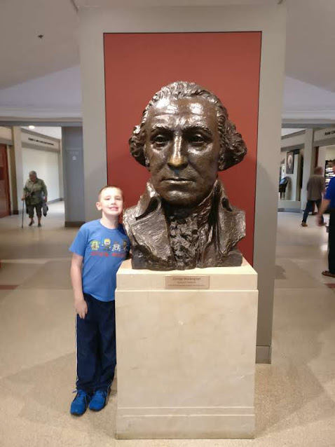 There is a large museum as well, with a lot of educational information about Washington and his life. Below is a reproduction of him taking his oath of office as president. There were also several educational films. One of them was about the major battles that Washington led as a General in the Revolutionary War, and the theater they show the film in is amazing! The seats vibrate to the sound of canon fire, and they actually have it "snow" in the theater to help put you in the setting when Washington was doing his famous Crossing of the Delaware. It was awesome!